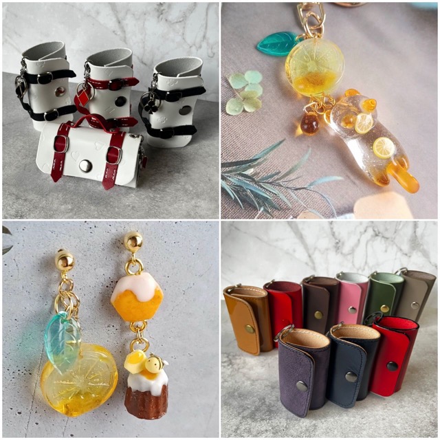 - 粘土やレジンを使ったフェイクスイーツやフェイクフードのアクセサリーと、本革を使用した小物やバッグの販売いたします。