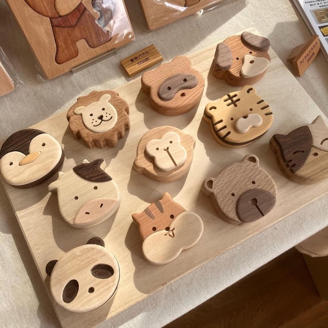 - 国産材・外国産材をいろいろ使用して木のおもちゃや雑貨・アクセサリーをつくっています。着色はせずに木のそのままの色を活かしてカラフルに仕上げています。端材工房の製品は使わないときにもお部屋に飾って楽しめます。高級品ではなく、みなさんの身近な製品づくりを心掛けています。 動物の顔がカスタネットやマラカスになったおもちゃが人気です。