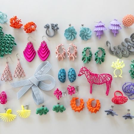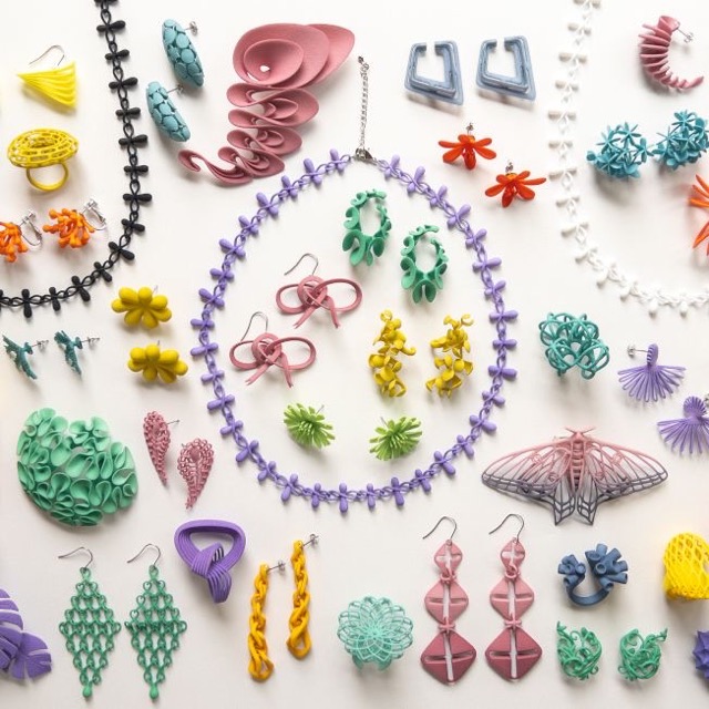 - 2011年から設立し、デザイナーとアーティストの二人組で、彫刻や建築物のような不思議な形状のアクセサリーを3Dプリンティング技術、そして、手作業染色によって創作しています。平凡な日常でも楽しめるユニークなファッションアクセサリー。 東京では森美術館のショップや京都伊勢丹でも販売されています。