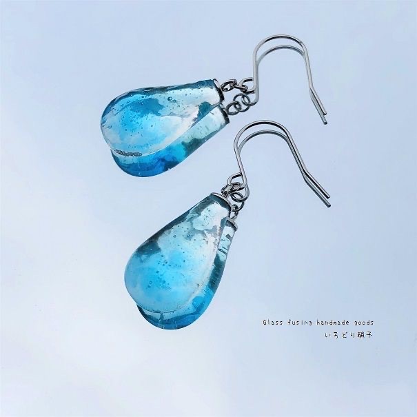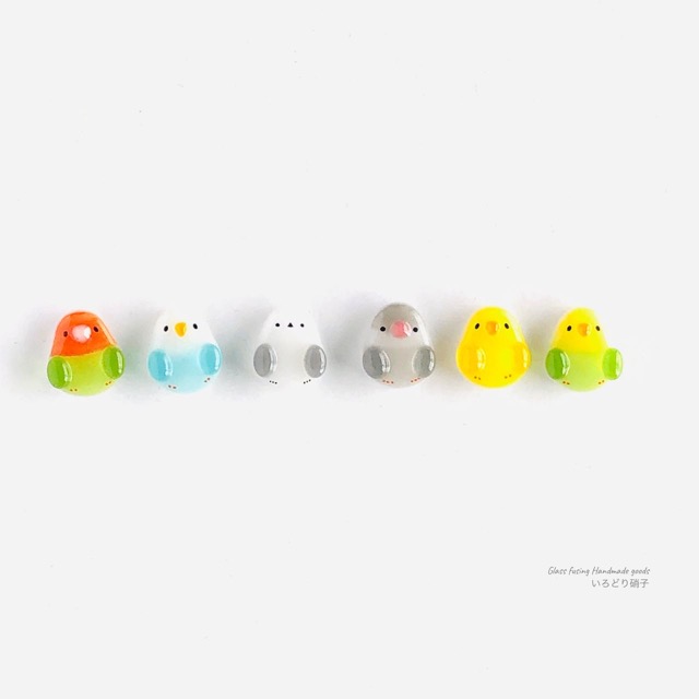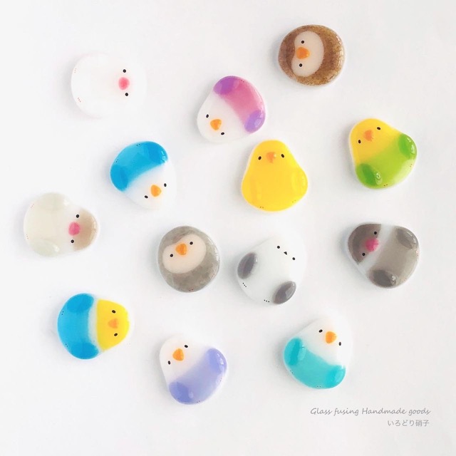 - いろどり硝子では気軽に普段使いできる硝子アクセサリーや小鳥さんの硝子雑貨を中心に制作をおこなっています。(ガラス工芸の1つフュージング『硝子を溶かし融合させる』という技法で制作しています)。硝子は組合せや焼き加減でまったく同じものができないためほぼ1点物になります。
