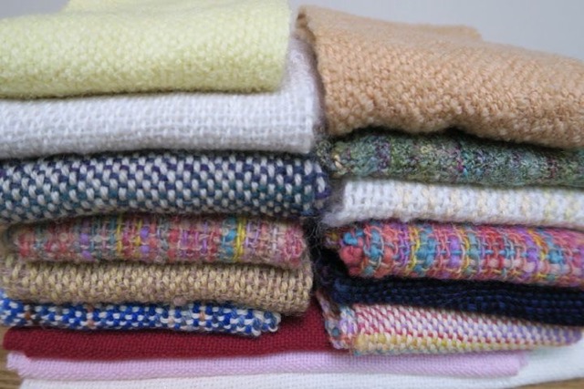 ポーチ、手織りマフラー、シール、キーホルダーなど