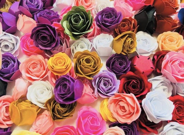 - 主にペーパークイリングを基本にした作品を作成しています。 紙で作ったお花をメインに 様々なペーパークラフトの技法を含め、紙の種類にこだわらず、自分なりに自由な発想と ひらめきで、テーマを決め、いく重にも層を重ね、立体的に仕上げた作品です。