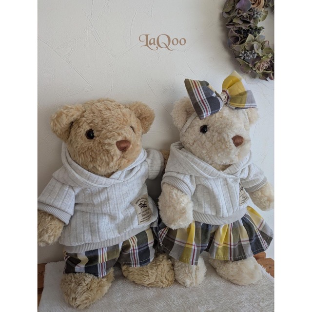 出来るだけ天然素材を使用してナチュラルな色や素材にこだわってぬいぐるみのお洋服を作っています。 6種類のサイズをご用意しています。