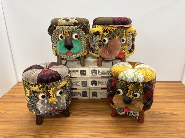 - 和歌山県高野口産の金華山織りをベースに様々な生地を合わせたオリジナルのアニマルスツールを夫婦で制作しています。
