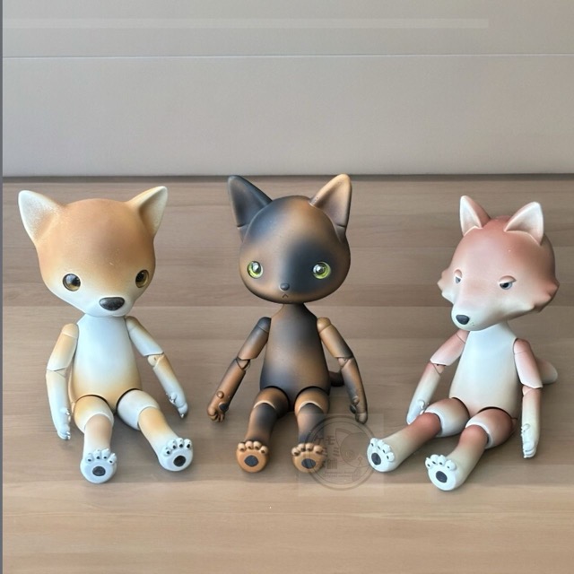 - 手のひらサイズの球体関節人形を作っています。 素材はレジンで、3Dプリンターで出力したパーツをひとつひとつ磨き、塗装して組み立てています。 モチーフはケモノ(半獣)です。小さいのでどこへでもお供できます。 ぜひ手にとってご覧ください。
