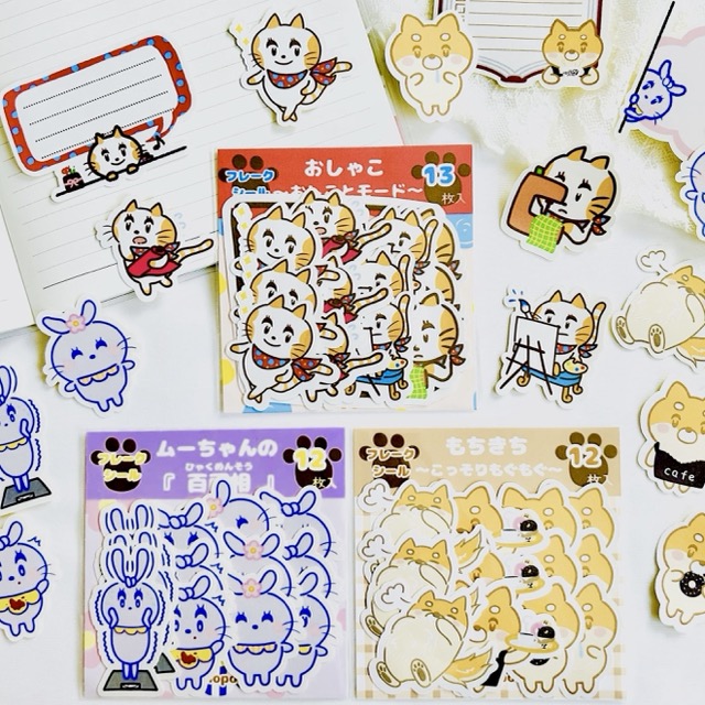 - 自分で描いたイラストをシールにしたり、ハンカチなどの布小物を制作しています。 オリジナルキャラクターのおしゃこたちがお出迎えします! 初出展でドキドキしていますが気軽に声をかけてくださいね! お待ちしております。