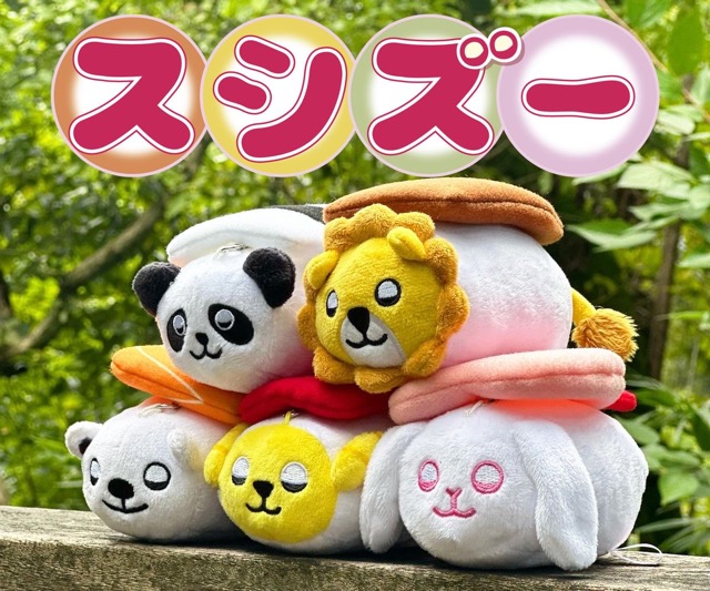 - おすしの動物園スシズー(sushizoo)のキャラクターのオリジナルグッズ販売。スシズーの仲間たちスシメー・スシロクマ・スシピョン・スシパンダ・スシレオの5種類の手乗りぬいぐるみが勢揃い。今回は手作りの箸置き10種類が勢揃いでクリマで新発売。 ちっちゃくてカワイイので是非見に来てくださいネ。