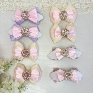 - 甘くてときめく夢をかたちに ふわふわリボンにきらきらビジュー。 夢とお砂糖でできたような、とびきりスウィートなお姫さまアクセを心を込めてお届けします