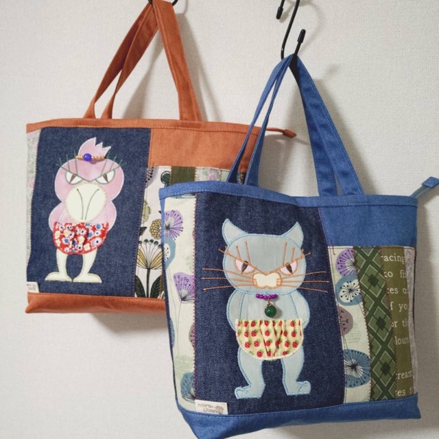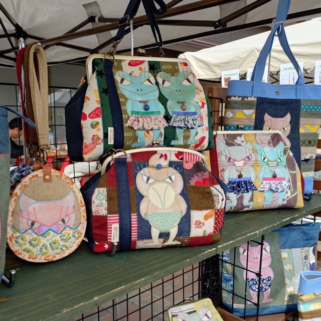 - いろいろな柄や素材の生地をつなぎ合わせた バッグやポーチなどの小物・雑貨を制作しています。 特に 怪しい 顔をした オリジナルキャラクター「にゃじご&けろんご&はじぃ~ご」を アップリケした作品づくりに 力をいれています。 是非手に取って 見ていただきたいです。 日々 作成していますので、完成品は インスタグラムを チェックしていただけると 嬉しいです
