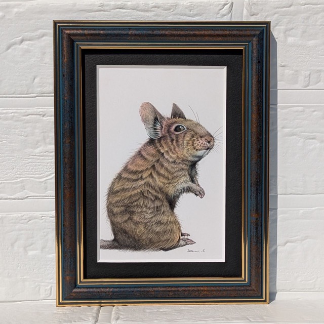 - げっ歯類のデグーの絵を描いています。デグーがもつ魅力をペン、色鉛筆、デジタルなどで表現しています。今回が初参加となり絵やオリジナルグッズの展示販売をします。