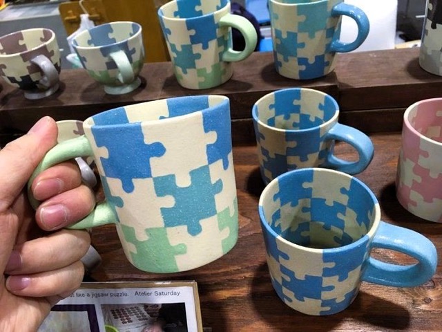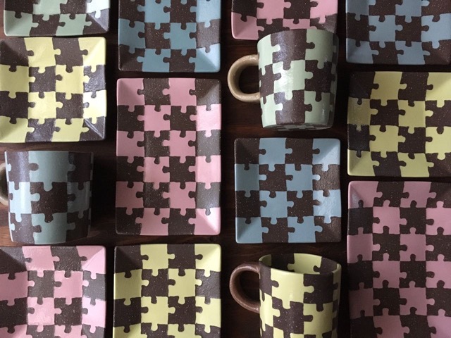ピースを1つ1つ組み繋げて作ったパズルの器など
