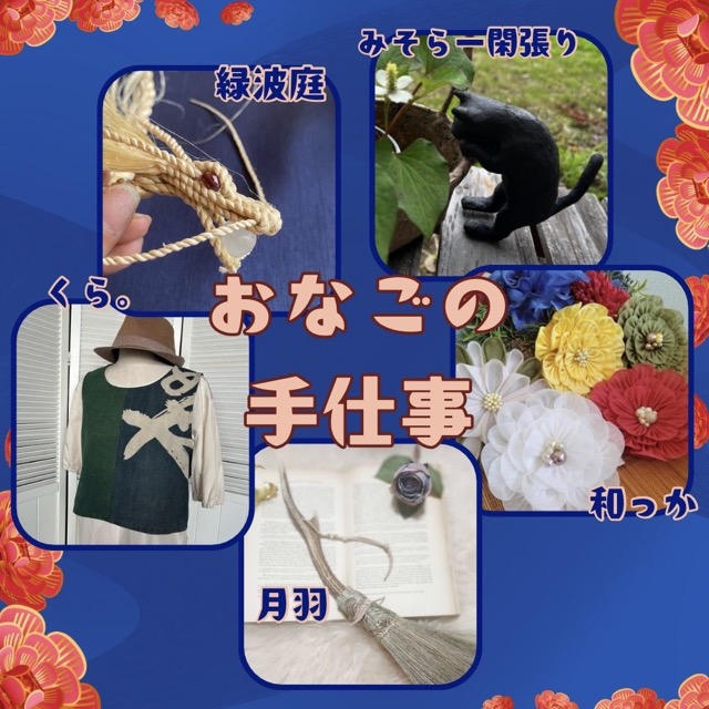 - おなごの手仕事です。伝統技法の一閑張り、邪気を祓う精麻飾り、魔除けの鹿角細工、伝統の髪飾りつまみ細工、着物が蘇る着物リメイク、、5人のおなご(作家)が日本の手仕事を身近にお届けいたします。