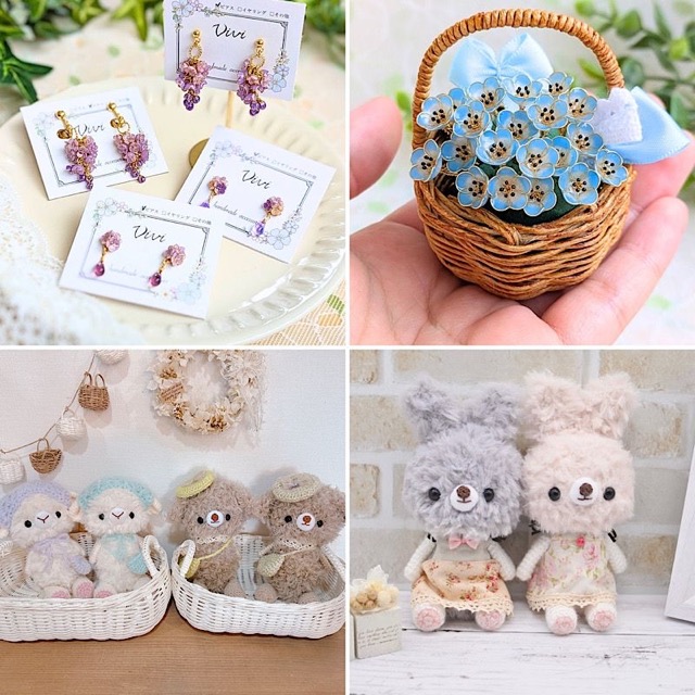 - amimami × Vivi(母娘コラボ) 手に取った瞬間、思わず笑顔がこぼれるーー そんな愛らしさとぬくもりを届けるあみぐるみをコンセプトに、母・amimamiが心を込めて制作しています。 娘のViviは、ワイヤーやプラバンなどの技法を用いて、小さなお花の世界を繊細に表現。 日常に優しい彩りを添える、ナチュラルなアクセサリーを生み出しています。 母娘で楽しみながら活動しています。