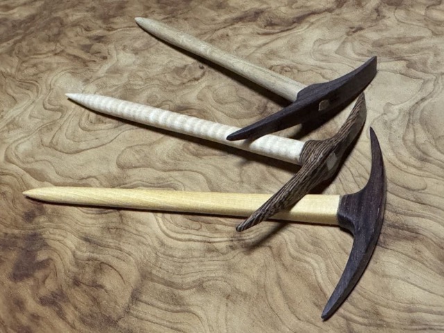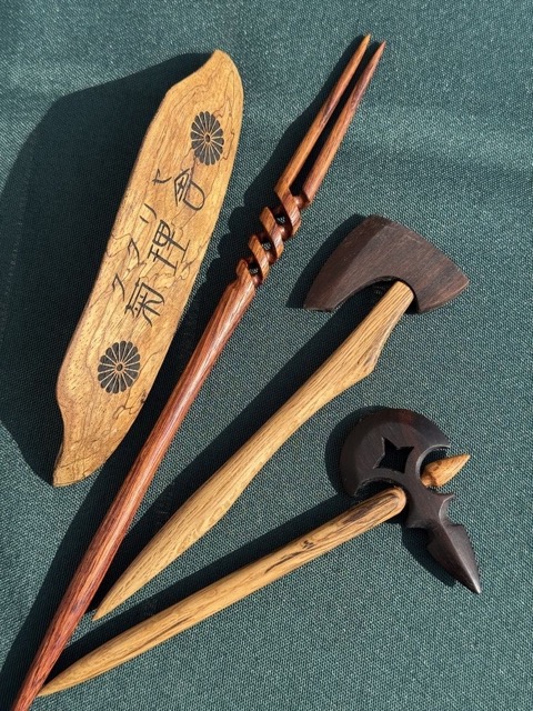 - 杢目と木目にこだわった銘木でアクセサリーとカトラリーをつくっています。全ての作品は既存の形に捉われず、曲線と曲面に拘った造形を心がけています。メインのかんざしは武器や工具など様々なツールをメインにデザインしています。