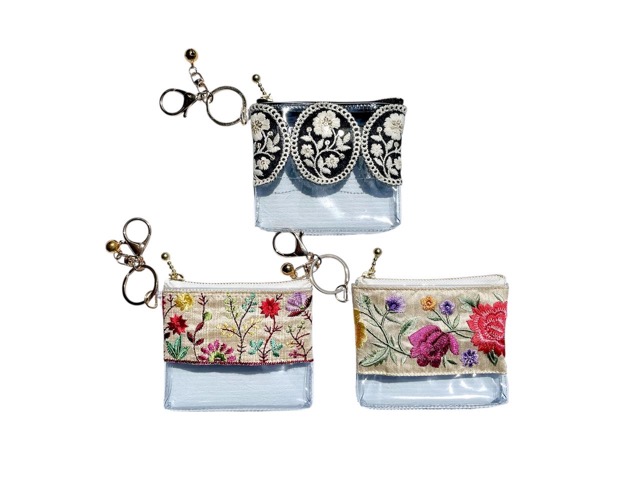- インド刺繍リボンを透明生地に縫い付けてポーチを作りました。中身が見えて便利に使えるしインド刺繍がとても豪華でステキです。いろいろな柄のラミネート生地とクリア生地を使って、中身が見えるペンケースやポーチを作っています 中身が見えるって必要な物がすぐ探せてとっても便利で使いやすいんです 北欧柄、犬、ねこ、パンダ、くまさんたくさんの柄があります 一つづつ心を込めてミシンで縫っています