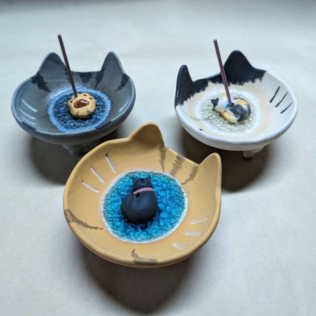 - 陶器で ネコちゃんお香皿&お香立て ネコちゃん電気スタンド ネコちゃんティッシュケース ネコちゃんメガネチャーム 等々、見てにっこり、手にとってほっこりするネコちゃん達を作ってます。