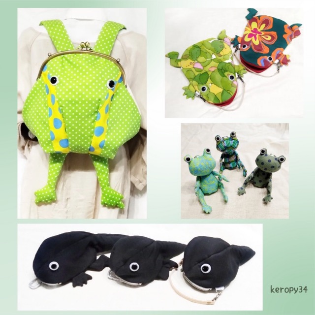 - カエルグッズを買い集めていると、ぬいぐるみや置物ばかり。もっと身近にカエルさんを楽しみたい! というカエル好きが考えた、ありそうでなかった『使える』『持ち歩ける』カエルグッズの製作をしております。