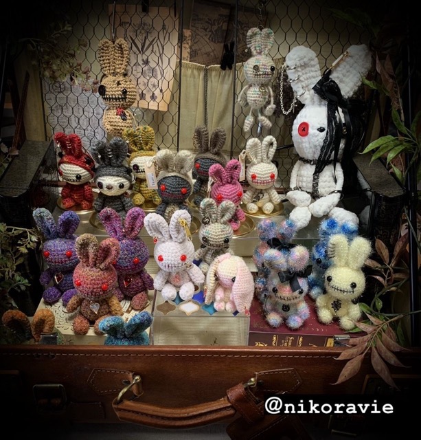 - うさぎをモチーフにした作品を作っています。nikoravieはちょっと歪なそれぞれ表情の違うあみぐるみ達とお待ちしています。viewはどこかの惑星かはたまた誰かの机の上かにいるウサロボ・ワレラビ達とお待ちしています。