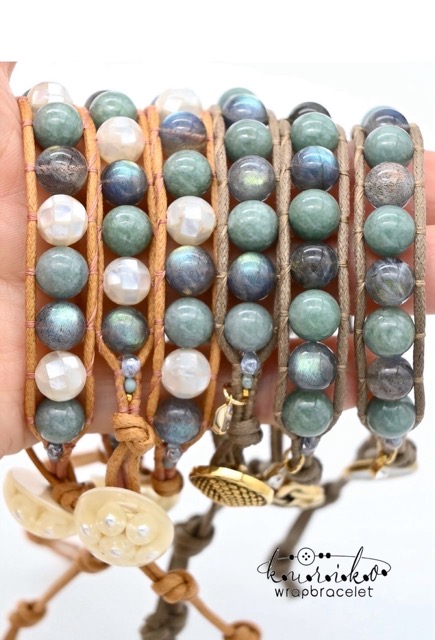 - 徳島でラップブレスレットを作り始めて14年になります。様々なボタンを留め具に使って、一味違ったブレスレットを作っています。天然石を使ったブレスレットは数珠タイプが苦手な方にもお守りとして大人気です!普段使いにも特別な日にも合わせやすいデザインを心がけています。初めての方にはお手頃な1200円ブレスもございます。ぜひお立ち寄りくださいね!