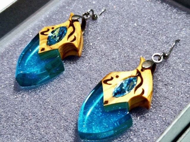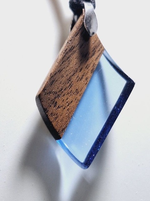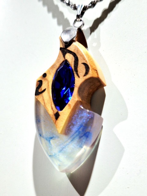 - 「都会的なウッドレジン」をテーマに製作したアクセサリー 代表作の「リーエの囁き」はウッドレジンにスワロフスキーを埋め込んでジュエリーの様なデザインのネックレス