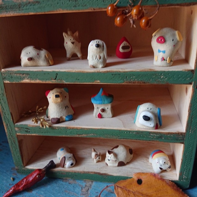 - ちいさな陶器の動物や家並みをたっくさん並べます!ぜひ見にいらしてください!