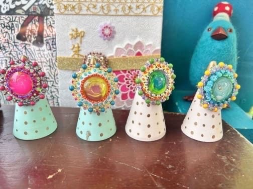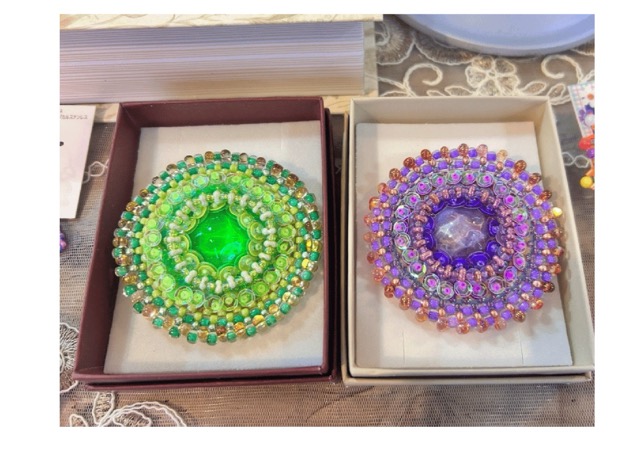 カラフルな髪飾りや耳飾りを中心にビーズ刺繍したり、ガラスに色付けして仕上げでいます 手にされる方の笑顔のタネになりますように