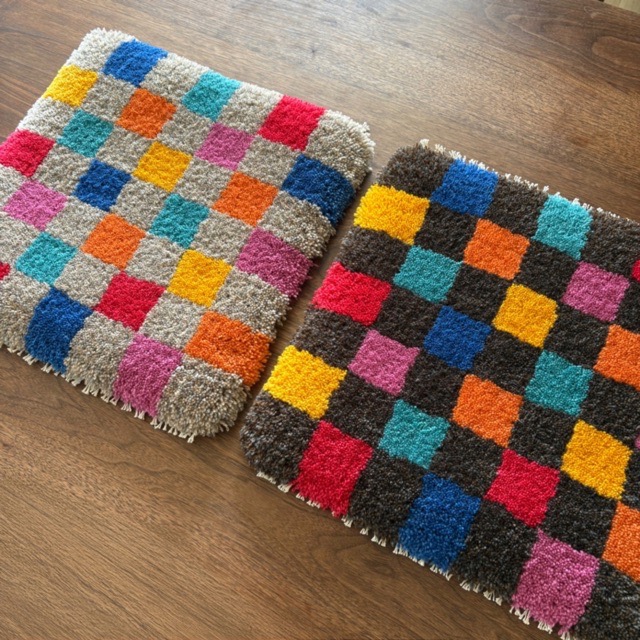 - ノッティングチェアマット、タペストリーなど、楽しい色柄の手織りアイテムをつくってます。