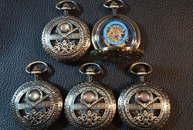 大きながま口バッグと懐中時計