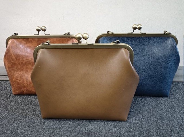 - A4、B5が余裕で入るような大きながま口バッグと懐中時計を加工したアクセサリを展示販売いたします。