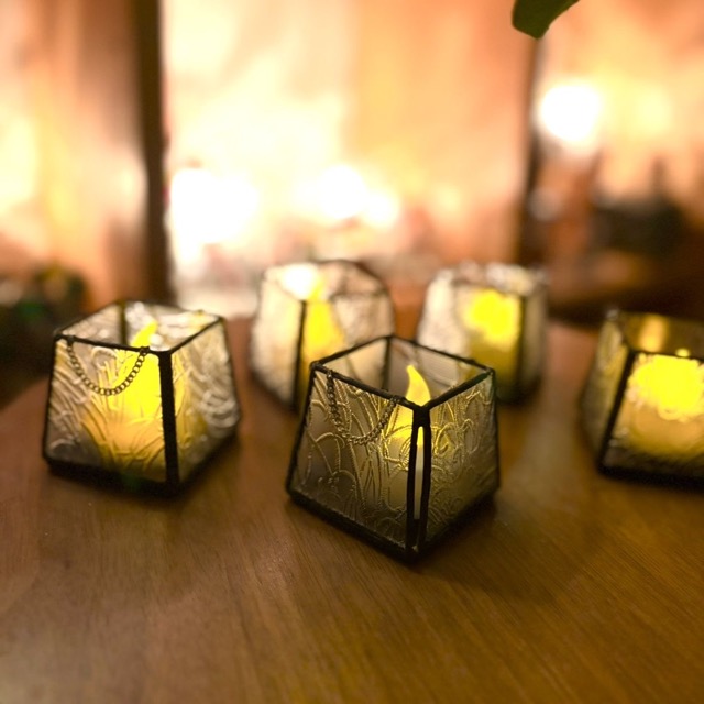 - 色や模様の違う板ガラスを小さく切り分けそれらを組み合わせて新しい形を作っていきます。癒しのランプや小さな花瓶、窓辺のオブジェやアクセサリーなど。生活に取り入れやすいアイテムを取り揃えております。ガラスの凹凸や透け感でできる光と影も楽しんでいただきたいです。