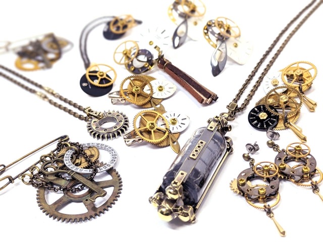 - ネジやナットなどの機械部品や働きを終えた時計のパーツをデザインに取り入れたインダストリアルでスチームパンクなアクセサリーを制作しています。 元溶接工の夫と現在古物商の妻の夫婦でデザイン、制作をしています。 普段は生活を支える部品達の、新たな一面に出会っていただけると嬉しいです。