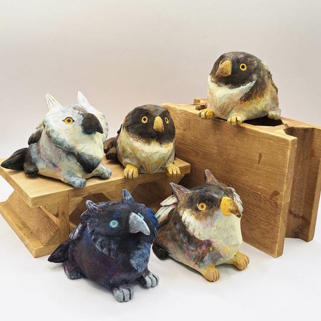 - オーブン陶土で置物・針山を制作しています。 妖怪や幻獣・動物たちを、デフォルメしたころころ丸い形で作っています。 全て手作り一点ものです。 手のひらサイズのいきものたちに会いにきてください。