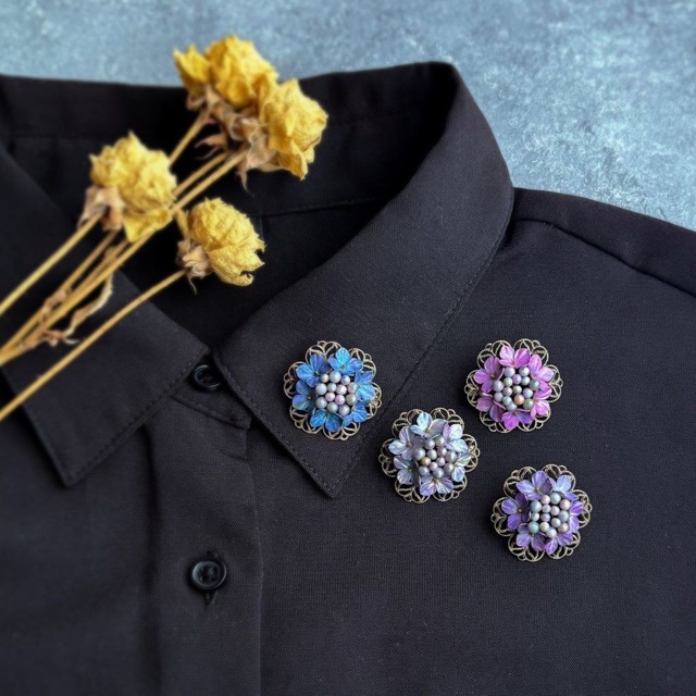 - 樹脂粘土を用いて咲かせるクレイフラワーアクセサリーです 繊細な造形と深みのある色彩の花たちを、アクセサリーにお仕立てしております