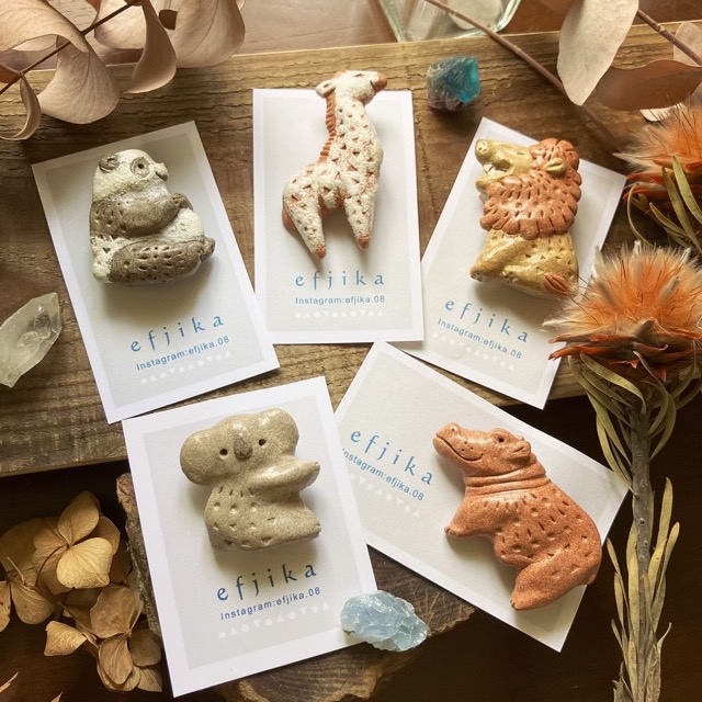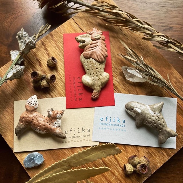 - "今日は一緒にどこ行こう?"をテーマに陶土でブローチなど、どうぶつのアクセサリーを制作しています。 つけていると1日、ちょっとだけほっこり、嬉しくなるような作品を目指して作っています。 ひとつひとつ手作りしているので、色も大きさも表情も世界でたったひとつだけ。お気に入りを見つけてもらえると嬉しいです。