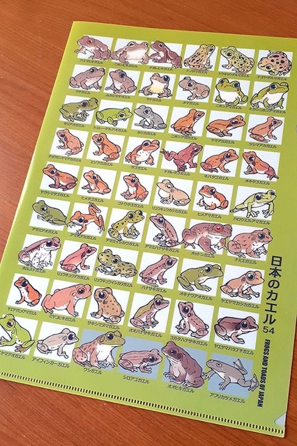 日本のカエルを全種描いた冊子、手ぬぐい、バッグなど