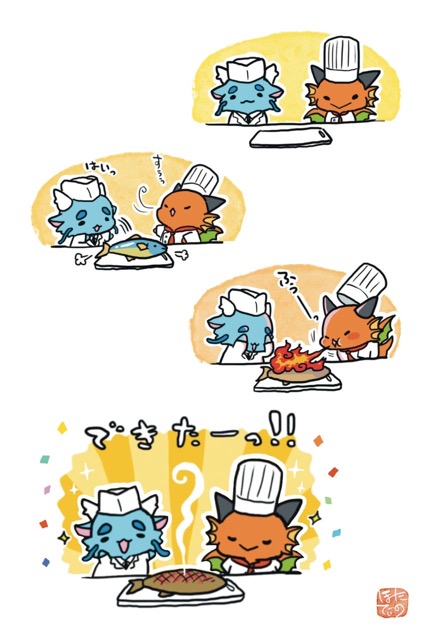 - オリジナルの竜のゆるキャラ「東洋竜さんと西洋竜さん」を中心に、色んな動物キャラを描いています。 当日は画集・コミックス・ポストカード・キーホルダー・原画などを販売予定です。