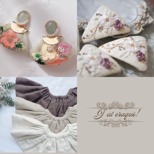 - J’ai craque! -ジェ クラケ- Lien...itotoito...× MIK○RI* × Licoco アクセサリーやベビーアイテム、リボン刺繍ヘアアクセサリーなど3作家が集まりました。 ジェ クラケ!(惚れた!まいった!) そんな風に思っていただけるようなアイテムを取り揃えております。 ぜひお手に取ってご覧ください♪