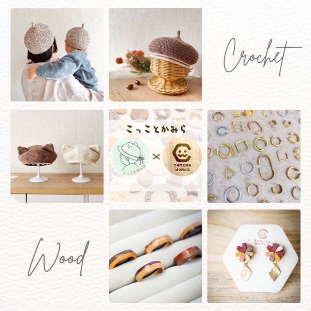 - 【こっことなんな】かぎ針編みのベビー&キッズの帽子・ヘアアクセサリーや、大人向けのヘアバンド・アクセサリーを作っています!かぎ針で編む毛糸の優しい手触りを感じてみてもらえたら嬉しいです【CAMIRA WORKS】端材の木や真鍮を素材に、ナチュラルで、木のぬくもりを感じるアクセサリーを作成しています