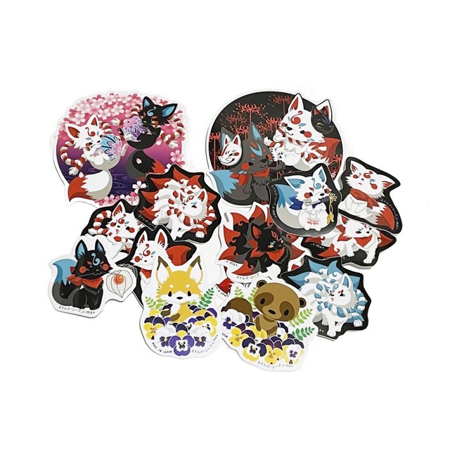 - 妖狐グッズ中心で、きつね、フクロウ、ねこ、いぬ、たぬき、インコ、ぺんぎん、キノコ、クラゲなどもふもふした動物をいろいろ描いています! ・キーホルダー・判子・メガネ拭き・Tシャツ・シール・ステッカー・バインダーなどいろんなグッズあります
