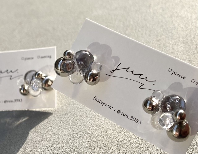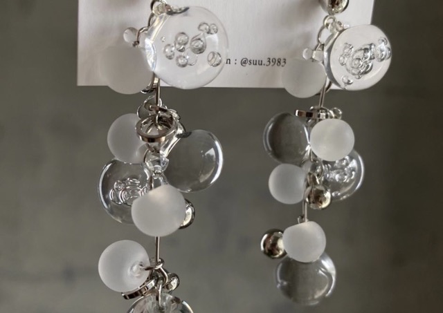 - toitohari シンプルだけど個性が光るタティングレースと年齢関係なく楽しめる少し個性的なアクセサリー。いくつになってもおしゃれを楽しむ人へお届けします。suu. 2液性レジンを使ってじっくり作った丸くて透明なパーツをbubble弾けるように仕上げました。日常にちょっと遊び心をプラスできる作品です。