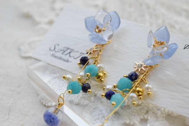 - 笑顔”SAKI”誇るアクセサリー 毎日にそっと花を添えるアクセサリーを。 ドライフラワー使用しております。 普段使いから、ちょっとおしゃれしたい日にも 合わせやすいピアス・イヤリングとなっております。 淡い色合いを意識しており、お花がまるで息をしているかのような作品に仕上げています。