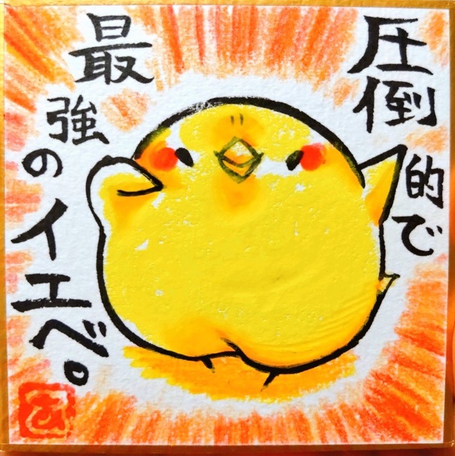 ヒヨコイラストと言葉の作品。ペット似顔絵