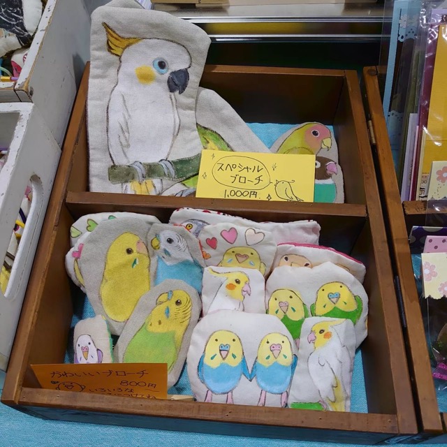 - ひとめ見たらわすれられないオリジナルキャラクターの置物や雑貨があるよ。鳥をモチーフとした雑貨やにぎにぎぽんもあるよ。
