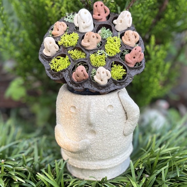 - ミニチュアクラフト、レザークラフト、陶芸などクラフトジャンルの垣根をこえて、統一感のない世界観をお楽しみください 猫とハニワ多めの叔母・山猫軒きんたろうと、キノコフィギュア(キノコノヒト)作家の甥・ケンヂのユニットです