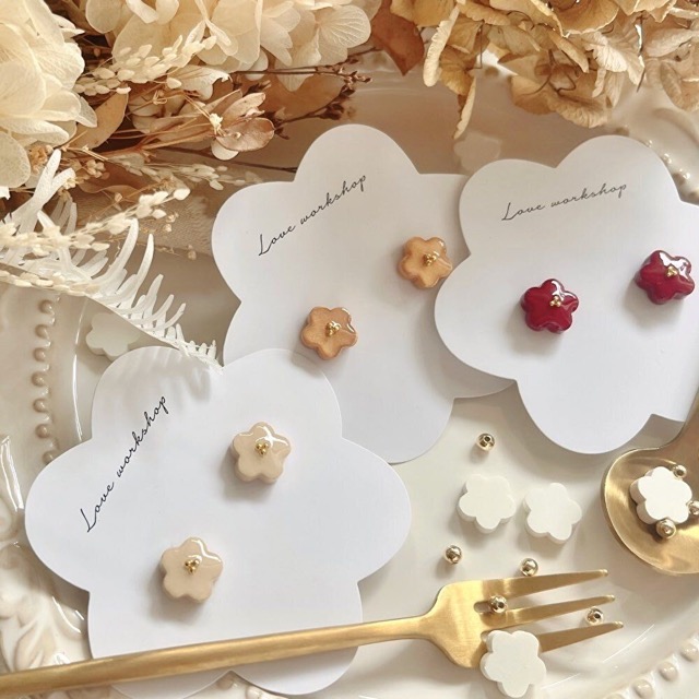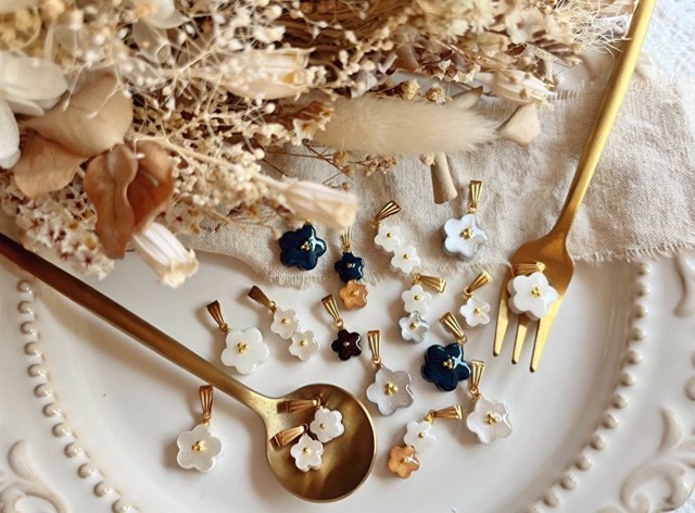 - 砂糖菓子のように甘い香りがしてきそうなカラフルでレトロなお花のアクセサリーを作っております。ぜひお好きなお色を見つけてくださいませ。