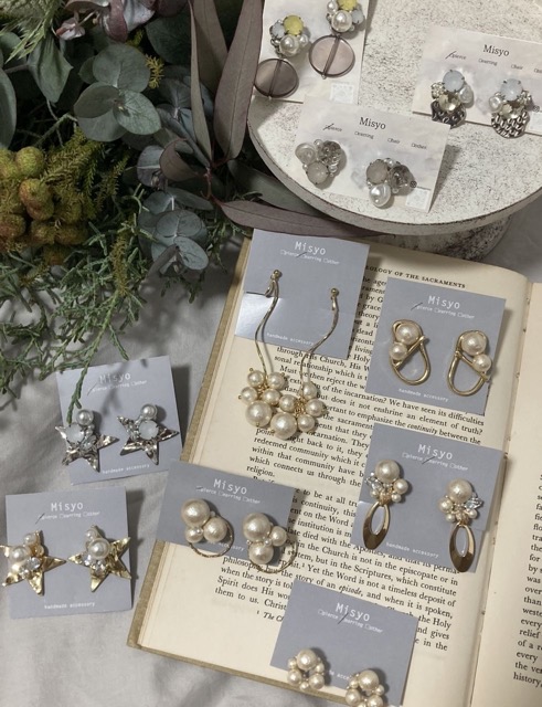 パールを基調としたハンドメイドアクセサリーです。 素材や形によって、幅広いシーンで楽しんでいただけるような多様なデザインをご用意しております。
