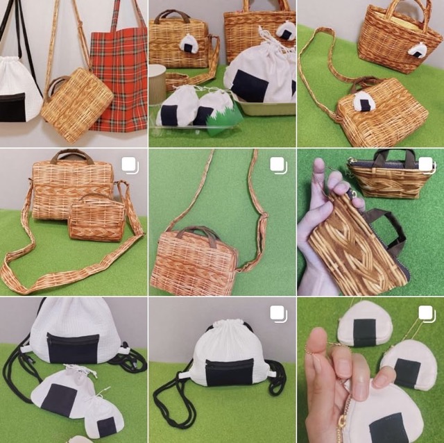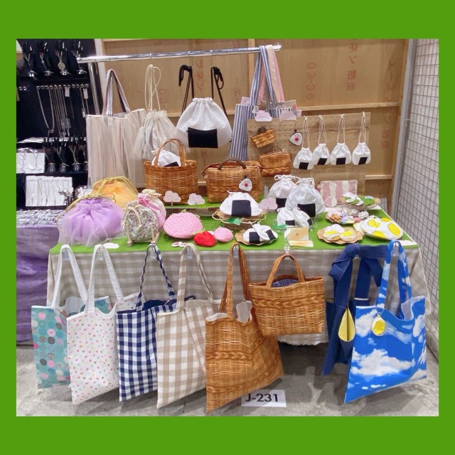 - 『ピクニック』をテーマに、おにぎりやピクニックバスケット、芝生を使ったアイテムから、ピクニックをイメージしたいろんな生地を使った巾着やトートバッグ、ポーチの布小物やアクセサリーと"ひとくせ"ある幅広いアイテムを出展。