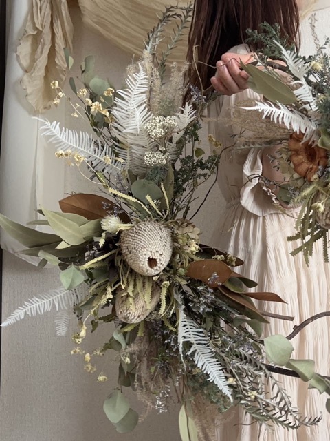 - 自然の色合いを大切にした、ドライフラワーのスワッグやリースをお持ちします。 お部屋にそっと彩りを添える小さなブーケや、季節を感じるアレンジも並びます。 ぜひお気に入りを見つけに来てください。