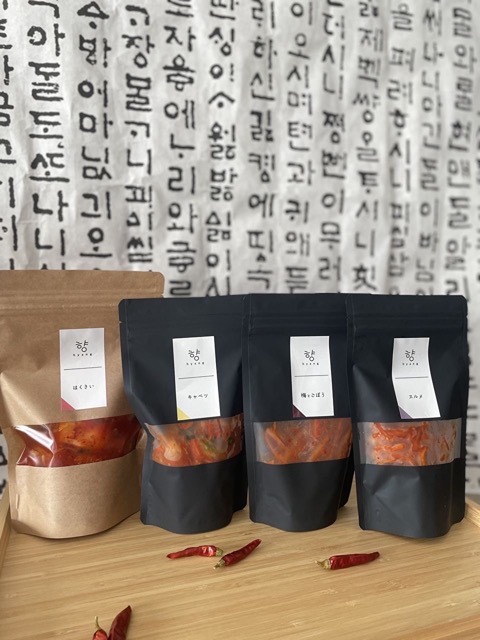 - 母から受け継いだ味を皆様にお届けしたい、美味しい笑顔を増やしたい、と姉妹でキムチ専門店を始めました。店舗販売をはじめ、月に一度のオンライン受注会を開催し全国発送もしております。また商品パッケージもシンプルかつ匂いの漏れない仕様になっておりますので、お土産としても大変ご好評頂いております。 フルーツと蜂蜜をたっぷり使ったhyangオリジナルキムチ、ぜひご賞味ください。