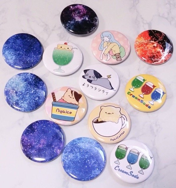 オリジナルイラストのステッカーや缶バッジなどのイラストグッズやハンドメイドアクセサリーなどです